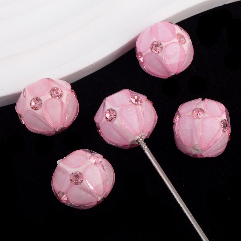 Inlaid Diamond Petal Beads Soft Clay Diamond Balls Pen-Drillable Straight Hole Beads