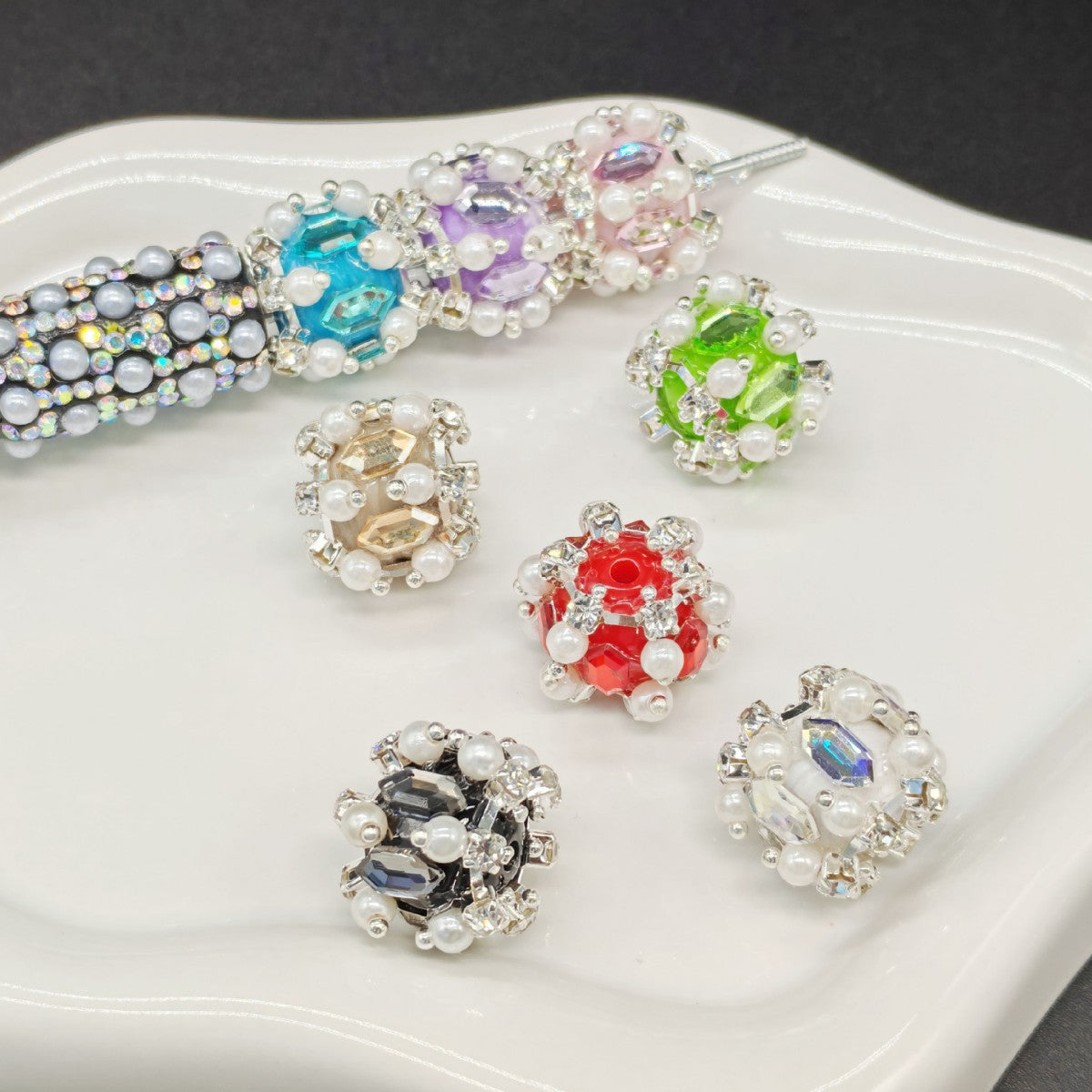 Pearl Zircon Heart Diamond Ball Straight Hole Bead