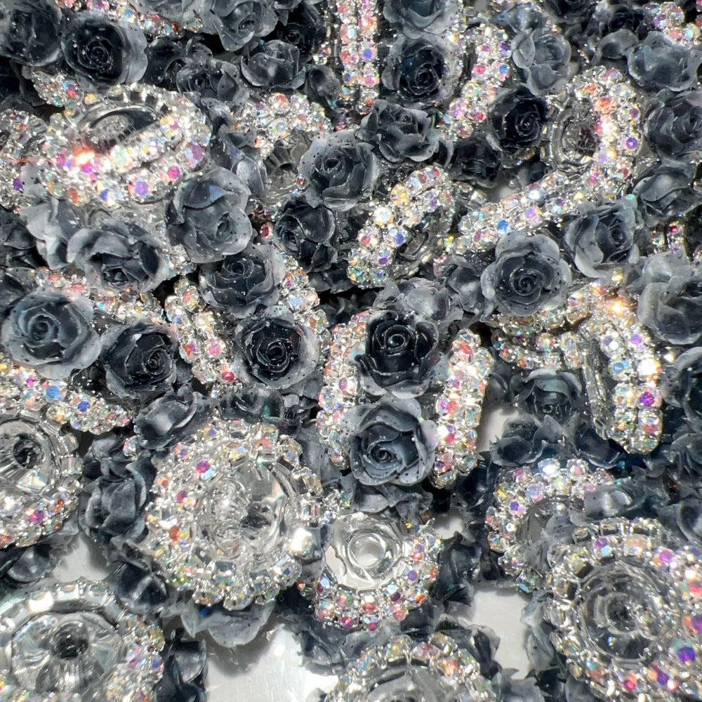 Rose Flower Holder Spacer Beads with Inlaid Rhinestones