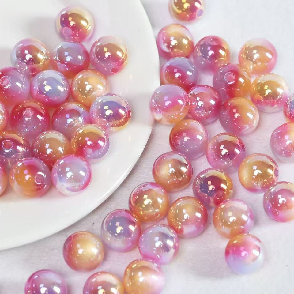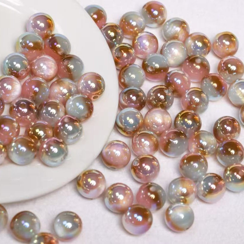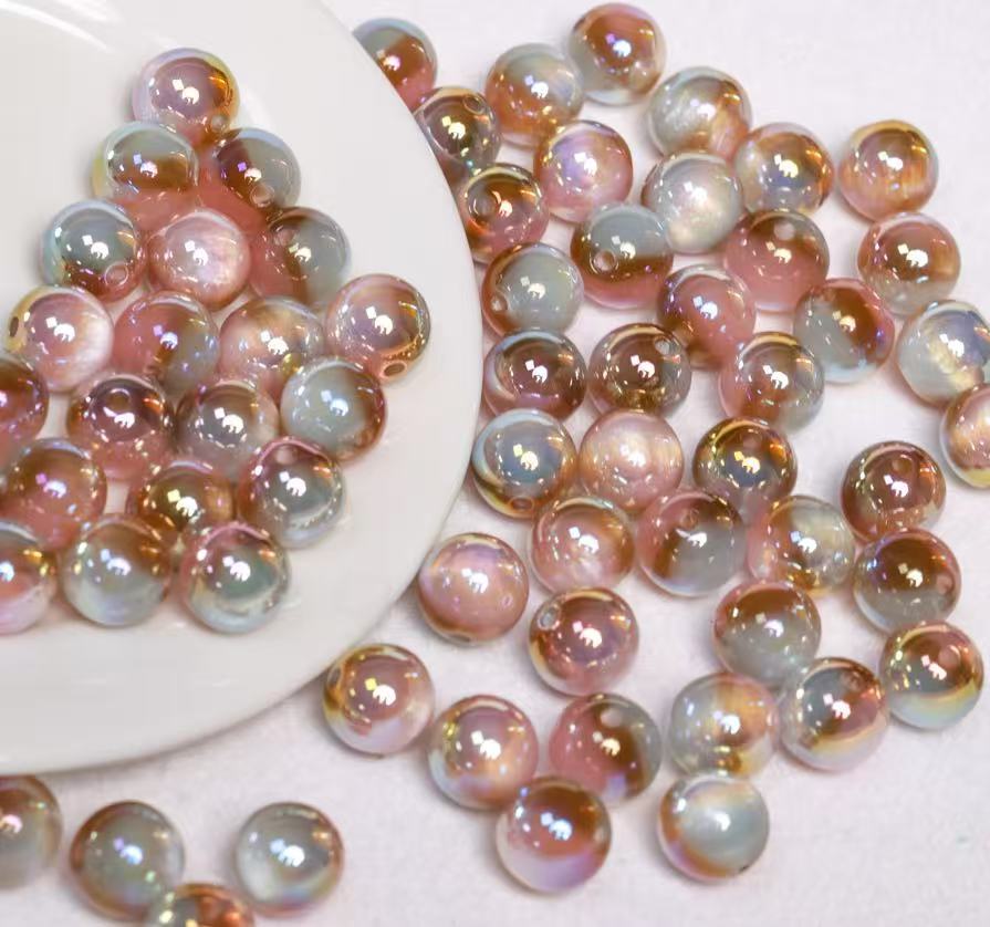 グラデーションツートンゴールドメッキキャットアイラウンドビーズ