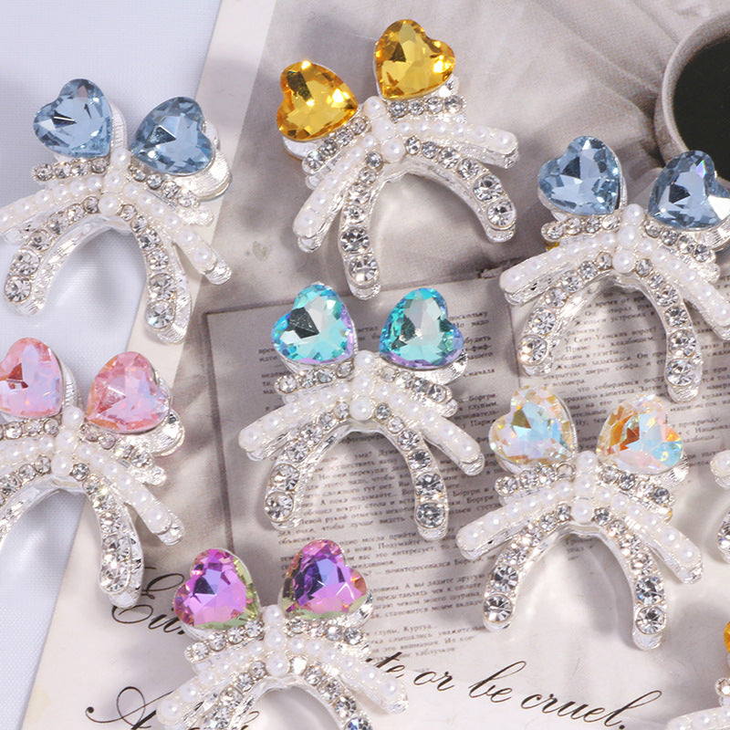 Alloy Double Layer Creative Bowknot Heart Drill Straight Hole Loose Beads String Beads